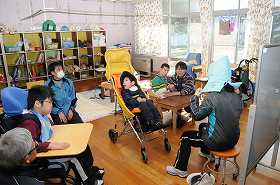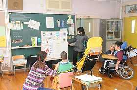 朝の会で、今日に予定について確認しています。