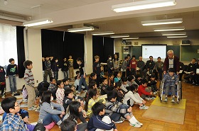 ボランティアティーチャーの方から、車いすについてのお話を聞いています。
