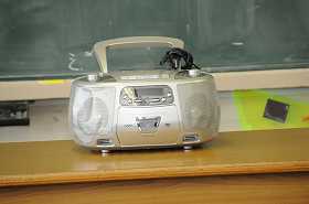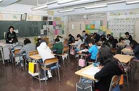 CDを聞き、その内容を聞きとる問題に取り組んでいます。