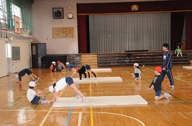 マットを使っていろいろな動きをしています。