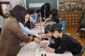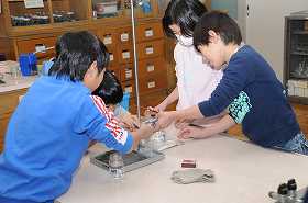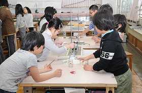 「もののあたたまりかた」で金属の温まり方を実験で確かめます。実験器具の準備をしています。