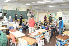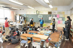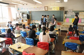 なの花タイムでお世話になった6年生にメッセージカードを渡しています。