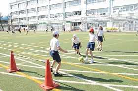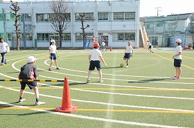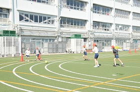 ラインサッカーの練習をしています。