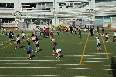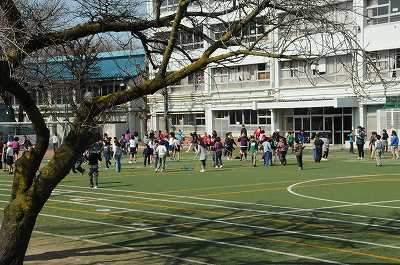 中休みに全校の子どもたちがなわとびの練習をしています。