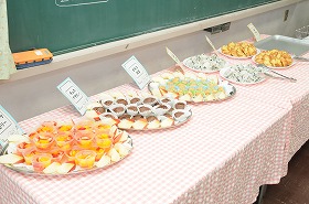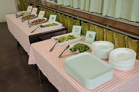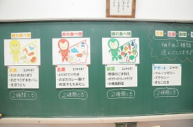 先日学んだバランスのよい食事を実際の給食で確認するために、バイキング給食を行います。