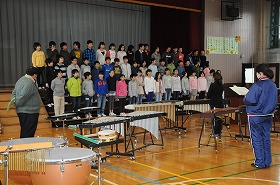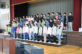 感謝の会の練習をしています。まず、呼びかけの練習です。