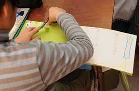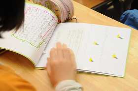 完成したことわざブックを友だちと交換して読み合っています。