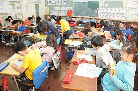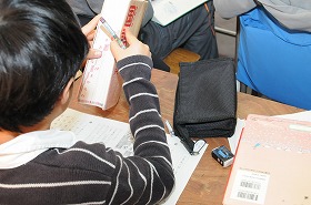 漢字のまとめとして、国語事典で調べながらパズルをといています。