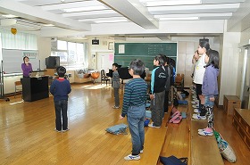 明日の6年生を送る会で歌うパフの替え歌を練習しています。