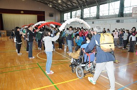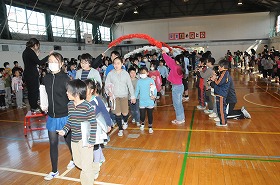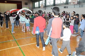 6年生を送る会が始まります。6年生の入場をエスコートするのは1年生です。入場の演奏は4年生が担当しています。