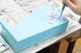 テープカッターを仕上げています。