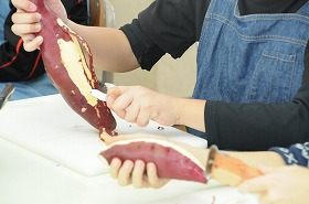 サツマイモを使って茶巾しぼりを作っています。