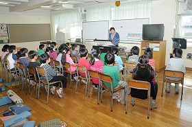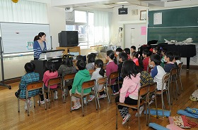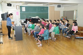 電子オルガンに合わせて、音階で歌っています。