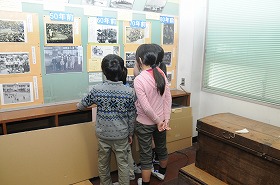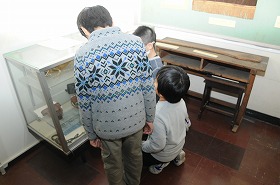 昔のくらしのまとめとして、油面小学校の資料室を見学しています。