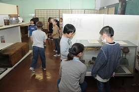 昔のくらしのまとめとして、油面小学校の資料室を見学しています。