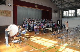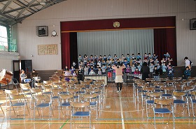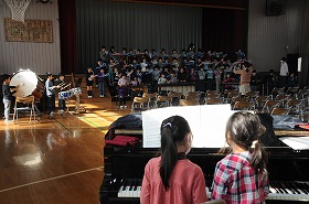 入学式後の歓迎の会の練習をしています。