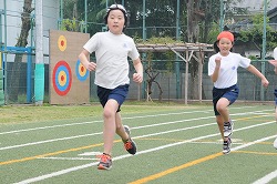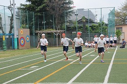 50m走のタイムを計っています。