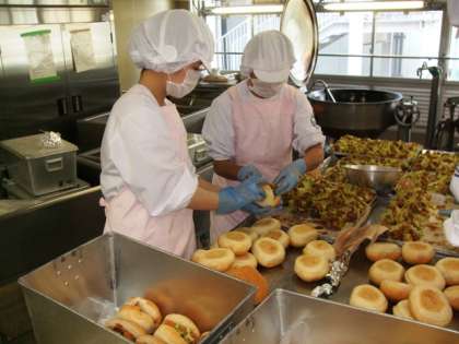 給食室で作りたてのフィッシュバーガーは衣もサクサクで大人気でした♪
