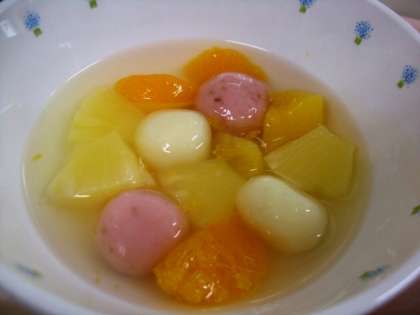 赤い白玉はいちごを練りこんで作っています。ほんのりいちごの香りもするので春らしい美味しいデザートです。