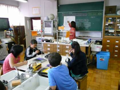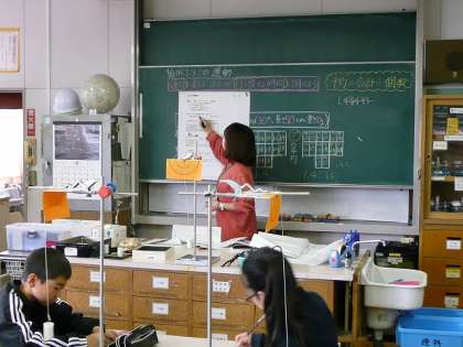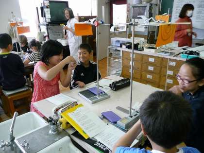 ふりこの運動に関する実験です。手順を確かめながら実験を行っています。