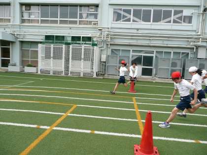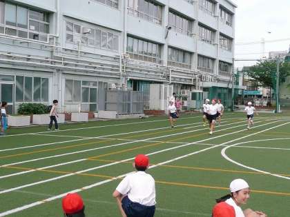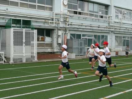 6年生は徒競走の練習です。さすが6年生。走るフォームも力強いです。