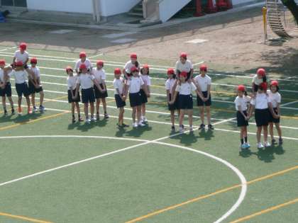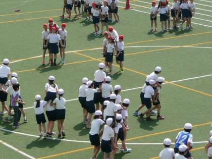 今日は5・6年合同で騎馬戦の練習です。5年生は初めてながらも、騎馬を組むことができていました。メンバーで話し合って、位置等を決めたようです。