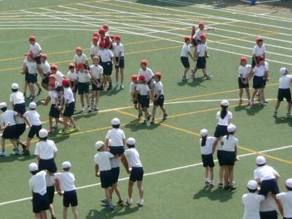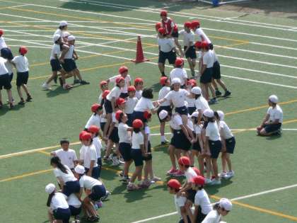 騎馬戦で実際に競技を行いました。これからそれぞれのチームで作戦が立てられることでしょう。
