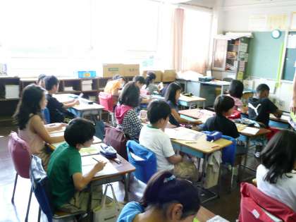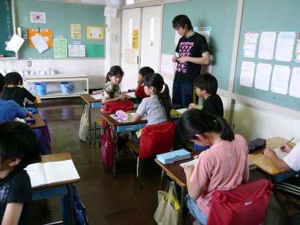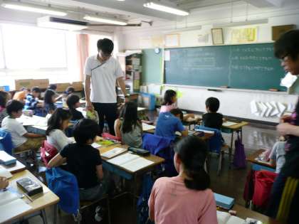 「かげと太陽」の学習です。かげはどんなところにできるのか、予想を立てた後、外で実際に確かめました。