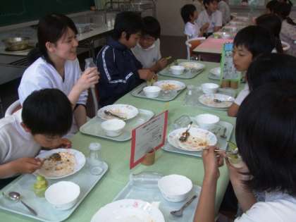 6年生は油面小学校のランチルーム給食も今年で最後ということで、今回は調理師さん達に一緒に給食を食べていただきました。普段お話する機会はほとんどないので、子どもたちは初めちょっと緊張していたようですが、『カレー大好きです』『デザートすごい!』と、楽しそうに話をしていました。