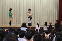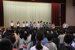 5/20の児童朝会は体育館で行われました。クラス目標の発表や食缶ゼロデーの表彰などがありました。