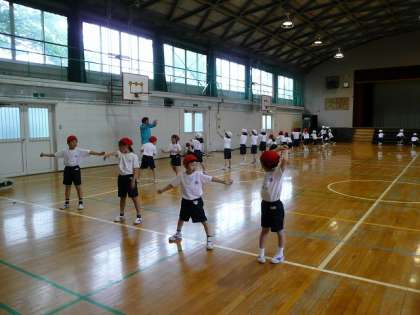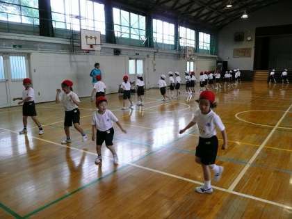 運動会の表現種目の練習です。ずいぶんダンスも覚えて自信がでてきたようです