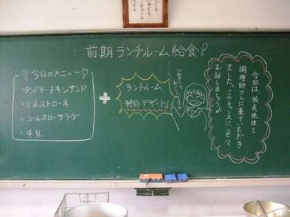 今日は6年1組がランチルーム給食をしました。ランチルームは普段と違う食器を使っています。(給食写真がランチルームのものです。)場所や食器が変わるだけでも、普段とは違う雰囲気となりさらにおいしく感じます♪