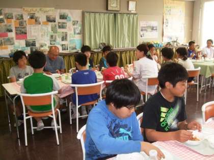 また、調理師さんにもランチルームで一緒に給食を食べていただきました。普段話すことができないので「いつから給食作っているんですか?」「どうやって作るんですか?」などたくさんお話をしていました。