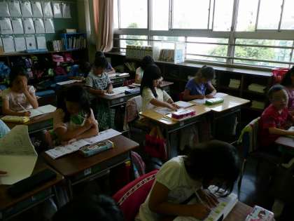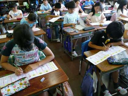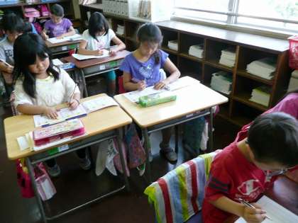 漢字練習に取り組んでいます。静かにていねいにすすめていました。