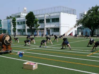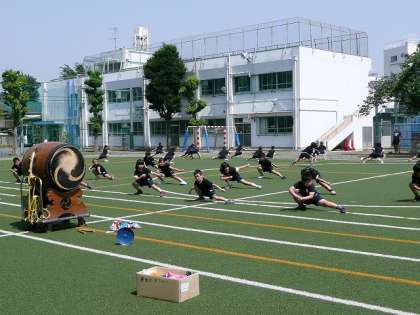 aburaソーランの衣装で今日は練習です。広い校庭での自分の立ち位置も確かめられていました。