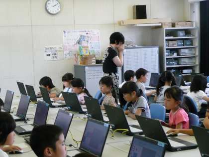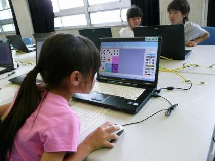2年1組も今年度初めてのパソコンを使った学習です。今日は好きなイラストを選び、サイコロをつくりました