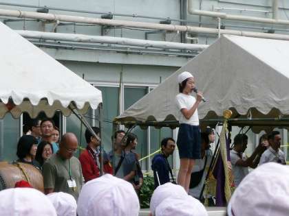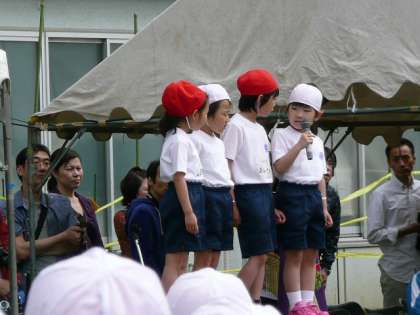 6年生による今年のスローガンのコールと1年生のあいさつの様子です