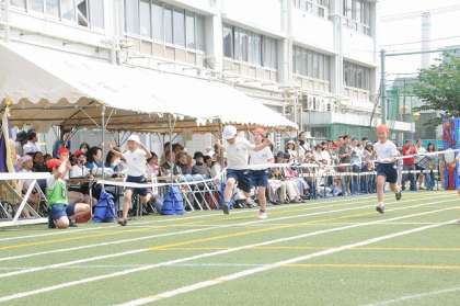 1番最初の競技です。4年生、緊張した様子でしたが、精一杯ゴールまで走り抜けていました。