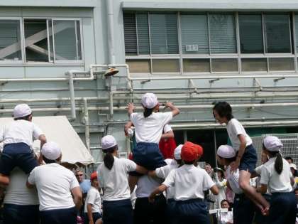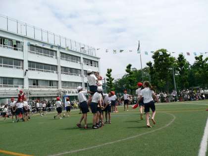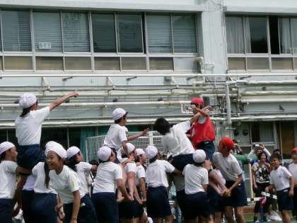 歓声を力に、騎馬戦は迫力満点です。今年は1、2回戦ともに白組が勝ちました。
