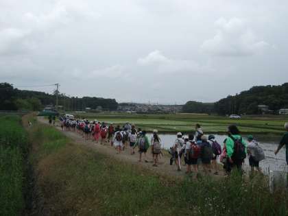 東松山に到着です。午前中は、雨が心配されました。田んぼの中の道を歩いて行きます。