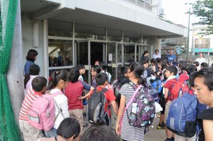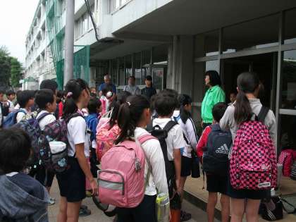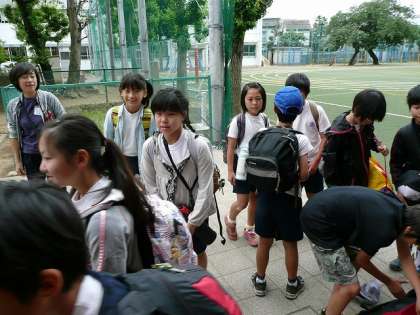 5年生は本日、バスで東松山へ。田植えを体験します。いつもより早い集合でしたが、楽しみにしていたのかきちんと集合し、バスに向かっています。