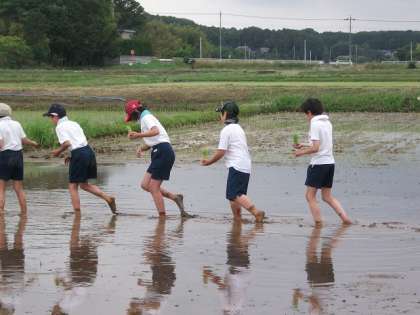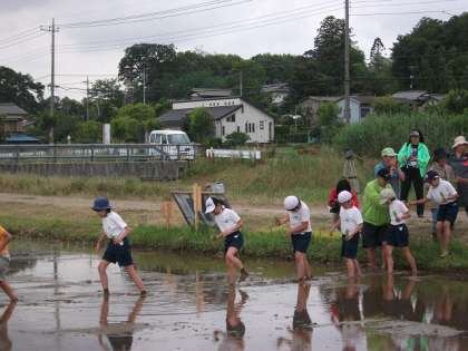 いよいよ田んぼに入ります。学校の田んぼとは、また違った感触です。