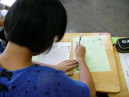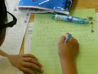 先日、田植え体験でお世話になった方へお礼のお手紙を書いています。おどろいたことや感動したこと、気付いたことなどくわしく伝えようと頑張っています。
