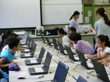 oアートクラブは、パソコンやデジタルカメラを使って、作品づくりを行いました。