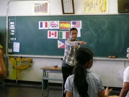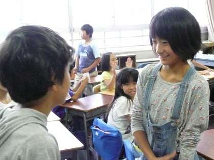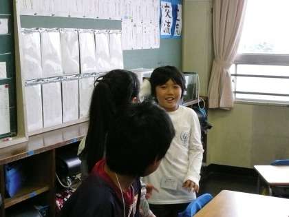 ALTの先生と学習しました。友達に学習したフレーズを用い質問し、交流しています。