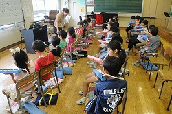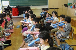 「ドレミの歌」「かっこう」をけん盤ハーモニカで弾いています。