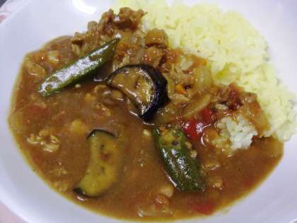 今日は米粉を使ったカレーを作りました。ルウを入れるよりも濃厚ではないので、さっぱりと食べることができます。なすやオクラは一度下味をつけてオーブンで焼いてからカレーに混ぜることで、野菜にもしっかり味がのり美味しく仕上がりました。