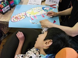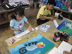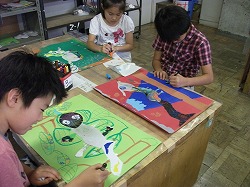 わかたけと一緒に作品を作っています。作品名は「カメレオンの七変化」です。モダンテクニックを使っています。