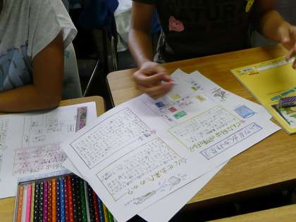 「ようこそ わたしたちの町へ」の学習で、パンフレットを作っています。