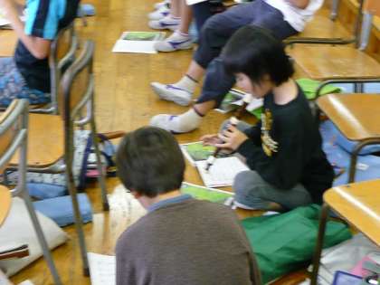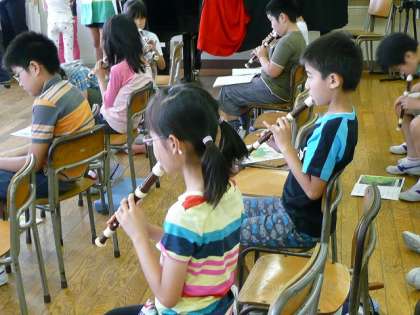 「とんび」のリコーダー練習です。友達と教え合いながら、取り組むことができています。